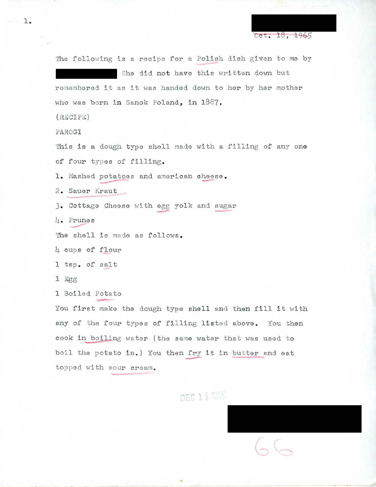 This collection contains 29 digitized items from collections from the IU Archives. These collections are C645 Indiana University Folklore Archives records and collections and C589 Indiana University Department of Home Economics. The motivation to create this was because the IU Archive and other Libraries on Campus use recipe cards for holidays and to give out. This way there are some recipes in once place for people to look at and use that are from IU Collections. Being able to have the recipies in one place helps the libraries be able to distribute a wider collection. This also showcases the history of IU with collections from the Indiana University Folklore Archives records and collections and the Department of Home Economics. These collections are used frequently, and having some items digitized from these collections helps with classes and departments who use these items. Having recipes in one places makes it easier to access these recipies from anywhere.